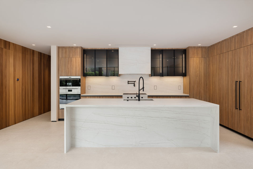 Caracalla Naturale Textured Wood, Smoked Glass Cabinets